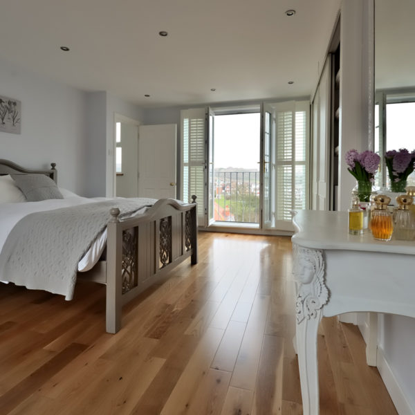 At this larger terraced house we have created a large bedroom with en-suite shower room. There are tremendous views from the french doors, overlooking Queen’s Park and towards the sea. Built in wardrobes and window shutters have personalised the project for the client.
